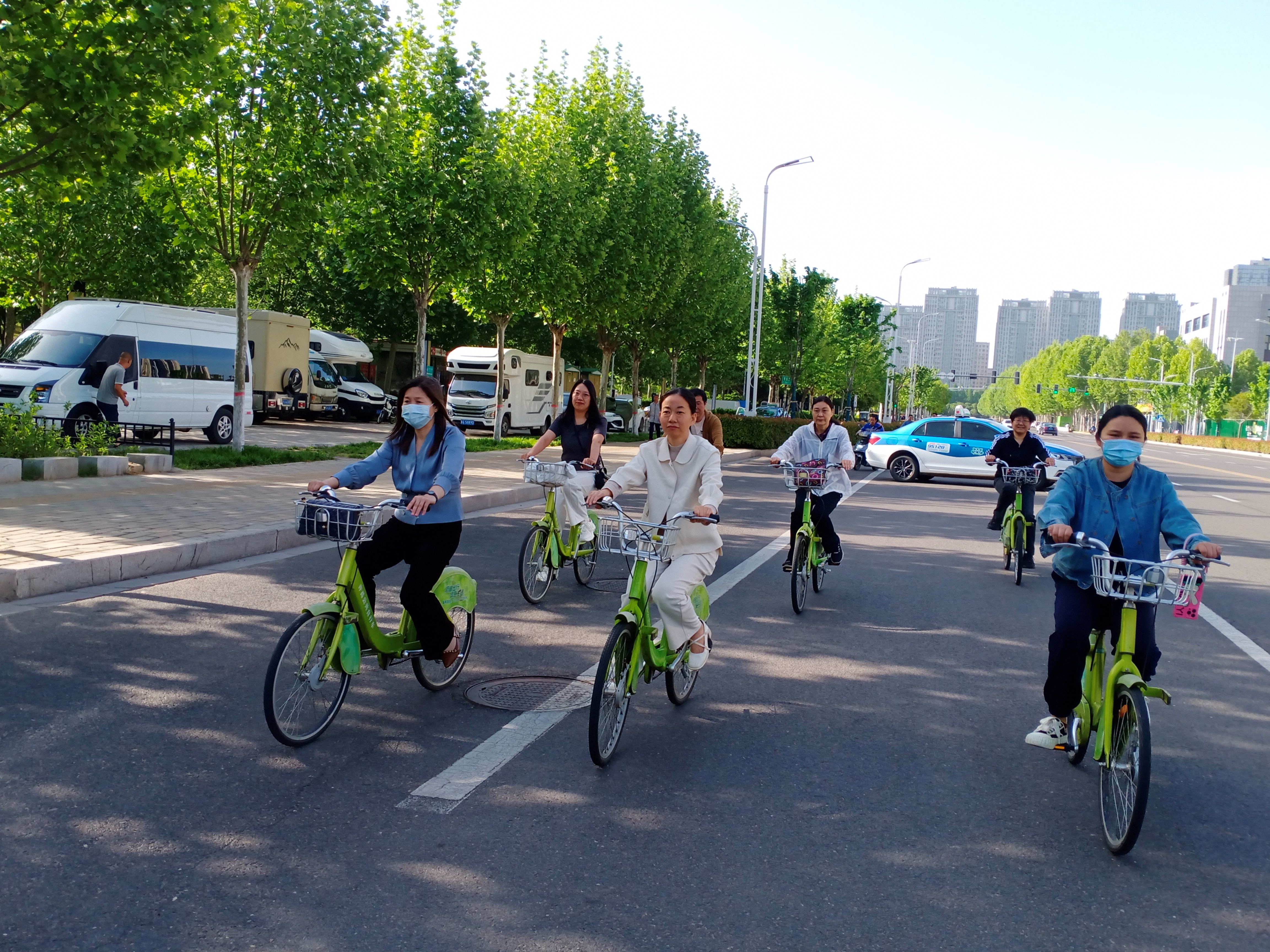 志愿者们从南海街中央公园门口出发,按照南海街、青梅路、永昌东路、竹林路、南海街的路线,围绕中央公园顺时针骑行一周,全程约5公里。骑行途中,绿树成荫,春意盎然,大家笑容洋溢、神采飞扬,充分享受着骑行带来的快乐。活动中大家自觉遵守交通规则,时时处处展示中心的良好形象。