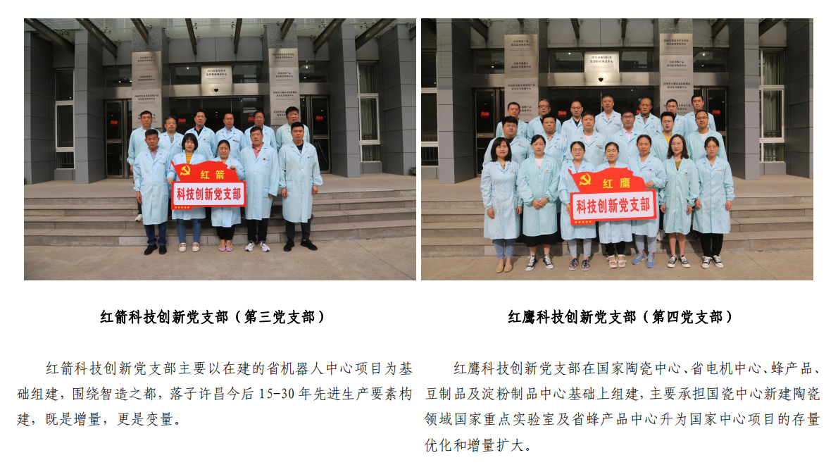 按照市委提出的基层党建“要素化、规范化、标准化、品牌化”的四化要求,以党史教育为契机,以党员专业技术人员为骨干,大力倡树“红”色精神,在原有四个党支部基础上,磨砺和打造了“红旗”“红星”“红箭”“红鹰”四个红色谱系科技创新党支部。实现了科技第一生产力、人才第一资源、创新第一动力、发展第一要务的融合统一。