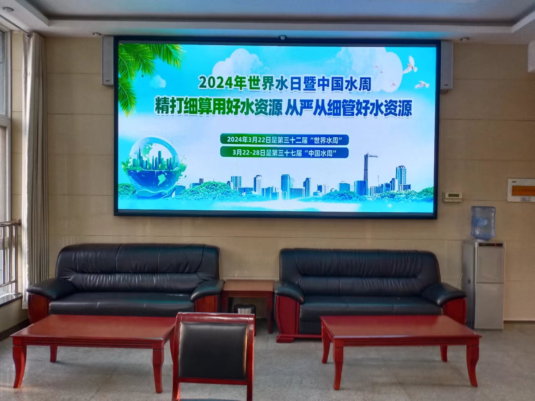 今年“世界水日”主题为“以水促和平”。我国纪念“世界水日”“中国水周”宣传活动主题为“精打细算用好水资源,从严从细管好水资源”。中心紧紧围绕主题,充分发挥公共机构在节约能源资源中的表率作用,通过电子屏滚动播放宣传海报、摆放展板的形式,积极对节约用水知识进行宣传。