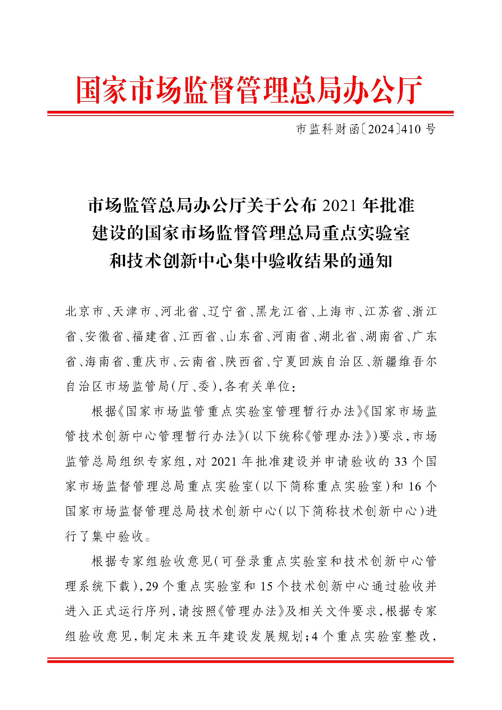 9月4日,国家市场监督管理总局办公厅印发《关于公布2021年批准建设的国家市场监督管理总局重点实验室和技术创新中心集中验收结果的通知》(市监科财函〔2024〕410号),公布33个国家市场监督管理总局重点实验室和16个国家市场监督管理总局技术创新中心验收结果。其中,我市依托许昌市产品质量检验检测与研究中心建设的国家市场监管重点实验室(陶瓷制品有害物质分析与评估)顺利通过验收,成为全国唯一地级市通过验收的国家重点实验室。